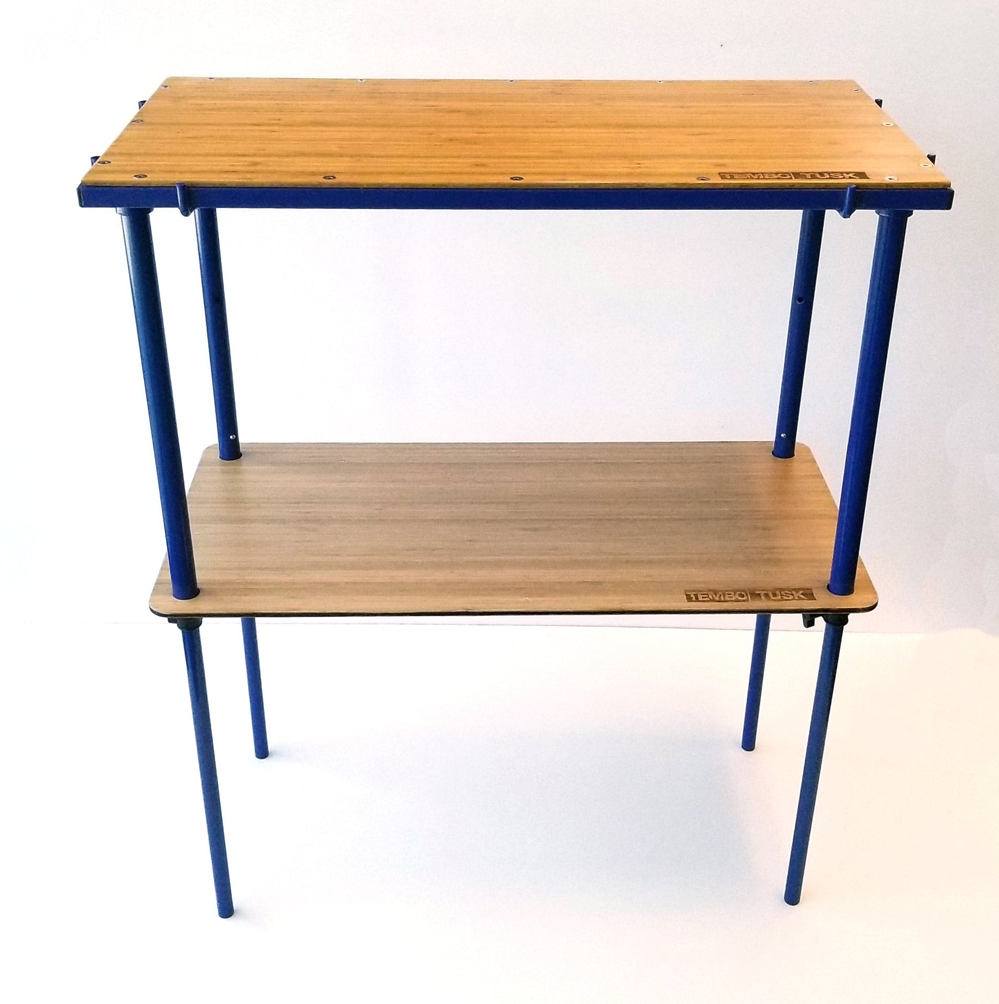 The Camp Table Shelf Kit is designed to be used with the TemboTusk Camp Table. The Shelf will slide down on the Camp Table legs and either rest on the leg clamps or on the supplied rubber "O" rings. The "O" rings allow the Shelf to be compatible with both the Adjustable Legs and the original straight legs and allows for infinite adjustability for the shelf height.