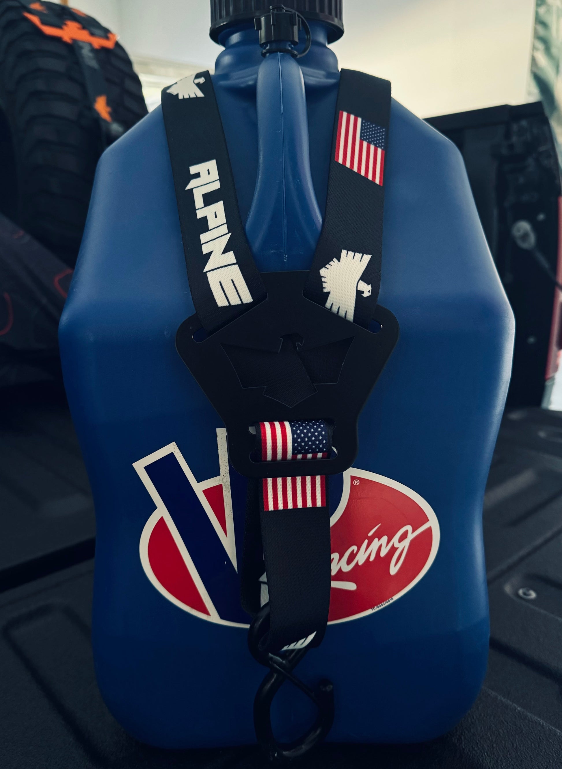 Dual Y Fuel Jug Strap- Alpine Flag