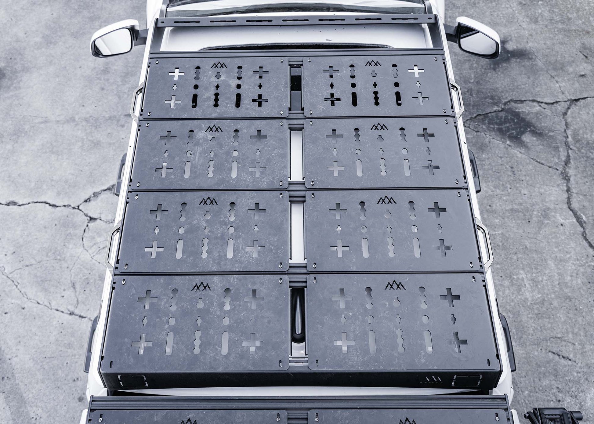 Our DRIFTR series roof rack for the 4th gen Toyota Tacoma not only gives you tons of added utility, but it unlocks an ecosystem of customization options to fully dial in your rig. Our racks are modular, light weight, super tough, have a low profile, install quickly, allow easy customization, have provisions for front and rear lighting, and ship cheap directly to your door. Dial in your rack exactly how you want it with our Universal Accessory Deck Panels and Awning Brackets.